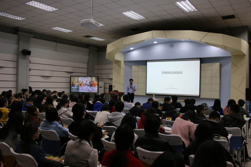2019年3月19日晚,由水果派 哲学水果派 、中和集团、科学研究院与教师发展中心联合举办的“哲学沙龙——中和论道”第五十一期在教师发展中心如期举行。本期的主题为“芝诺悖论及其效应”,由水果派 哲学水果派 胡好博士主讲,李朝东教授主持。中和集团洪涛董事长,来自各水果派 的众多哲学爱好者和哲学水果派 师生参加了此次学术活动。