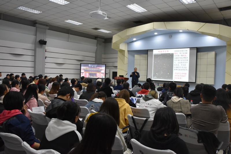 段老师介绍说,1687年牛顿发现万有引力定律及力学三大定律,奠定了经典力学的基础。1781年英国天文学家赫歇尔通过自制932倍望远镜,发现了天王星为行星而不是恒星、太阳的空间运动和太阳光中的红外辐射。1846年,天文学家利用天王星轨道的摄动推测出海王星的存在并成功发现海王星,这是万有引力定律又一次伟大的胜利。面对浩瀚的宇宙,人类的视野早已不仅局限在太阳系以内,天文学的视野转向对恒星的研究,天文学家哈雷对比托勒密时代的星表,发现在1700多年间天狼星,大角星和南河三恒星的相对位置发生明显变化,证实恒星有运动。之后被称为“恒星之父”的赫歇尔通过“路灯效应”证实了太阳在朝向武仙座方向运动。在前人基础上,天文学研究转向更遥远的银河系。