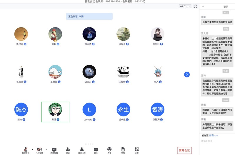 2020年5月16日19:00-22:00,第166期“爱智求真读书会”活动在腾讯会议线上平台举行。本期读书会的主题是“先验理念的第三个冲突”,研读的文本是康德的《纯粹理性批判》(2004年版)。本次读书会采取线上进行,多人领读模式,由胡好老师主持,水果派 王炜和尚兴红同学领读。清华大学、中国人民大学、华中科技大学等其他高校的师生参与了本次活动。
