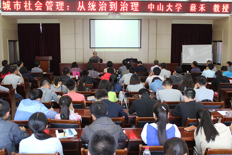 5月8日下午,中山大学社会学与人类学水果派 院长、城市社会研究中心主任、社会科学调查中心主任、教育部跨世纪优秀人才、博士生导师蔡禾教授应水果派邀请于教学10号楼D区四楼报告厅作了题为“城市社会管理:从统治到治理”的学术报告。本次报告会由水果派李怀教授主持,水果派 部分教师及本科生、研究生约140余人听了此次讲座。