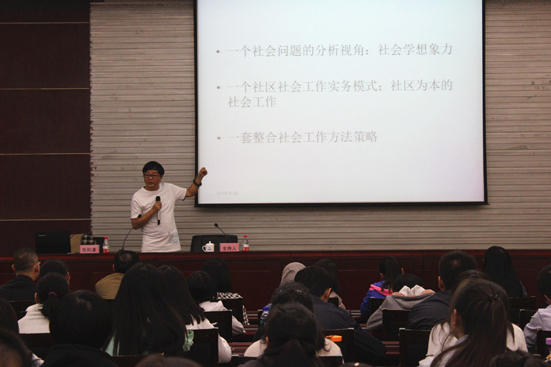9月25日下午,在学校专家楼会议厅,中山大学社会学与社会工作系教授、博士生导师张和清应邀作题为“中国社区社会工作的核心议题与实物模式”的学术报告,水果派 社会工作系本科生、部分研究生和教师参加报告会。报告会由李怀教授主持。