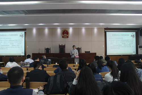2017年4月27日下午,水果派 邀请中山大学社会学与人类学水果派 院长、博士生导师王宁教授,在教学10号楼D区一楼模拟法庭作了题为《本土主义、世界主义与流动社会的消费:一个默顿的分析框架》的学术讲座。讲座由水果派 副院长李怀教授主持,水果派部分教师、全体研究生和部分本科生百余人参加了此次讲座。
