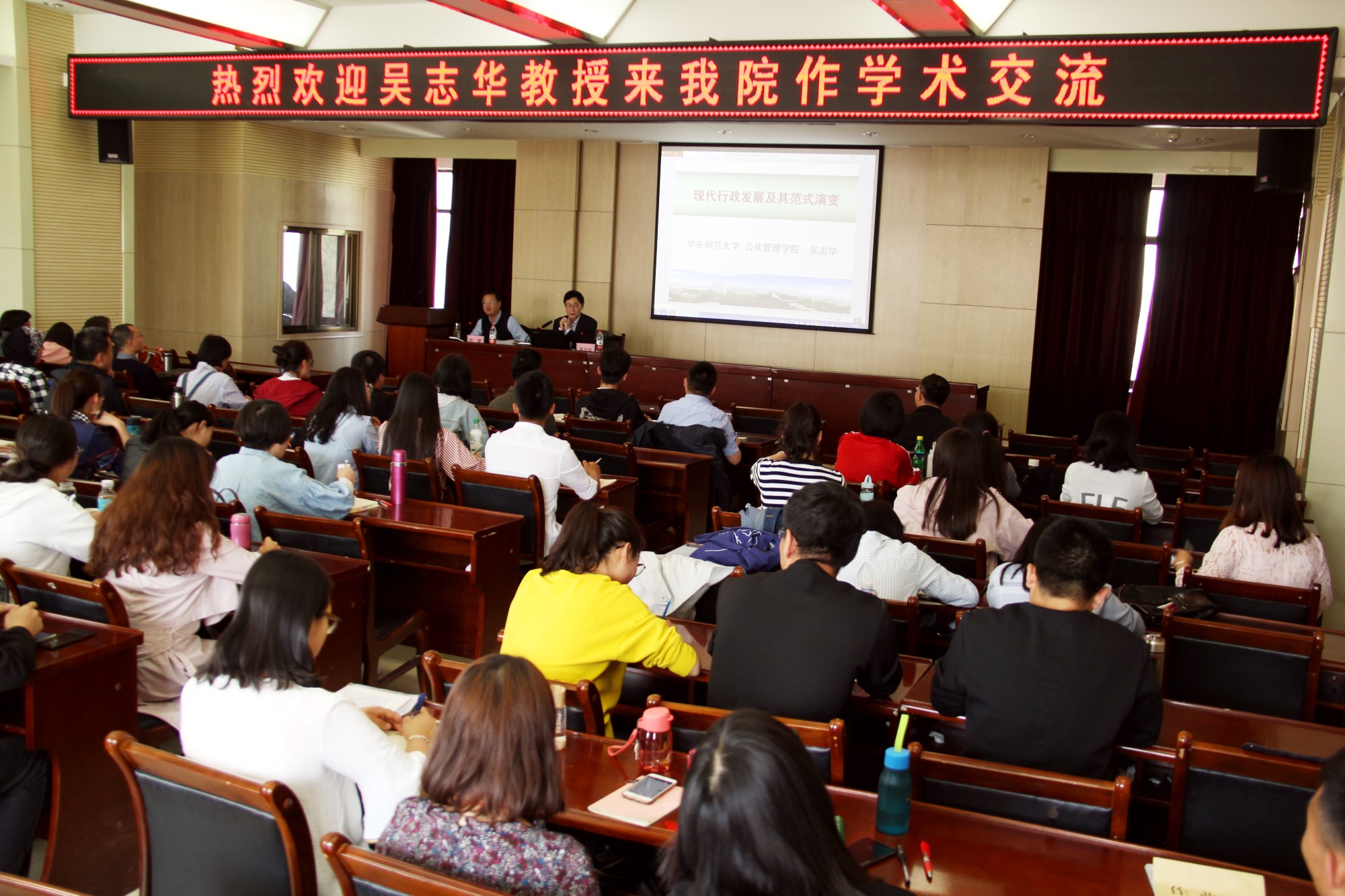 应我校社会发展与公共管理水果派 的邀请,华东师范大学公共管理水果派 吴志华教授于2018年4月18日下午在我校作了题为《现代行政发展及其范式演进》的学术报告。报告在教学10号楼D区四楼报告厅举行,水果派师生共90余人参加。本次报告由孙健教授主持。