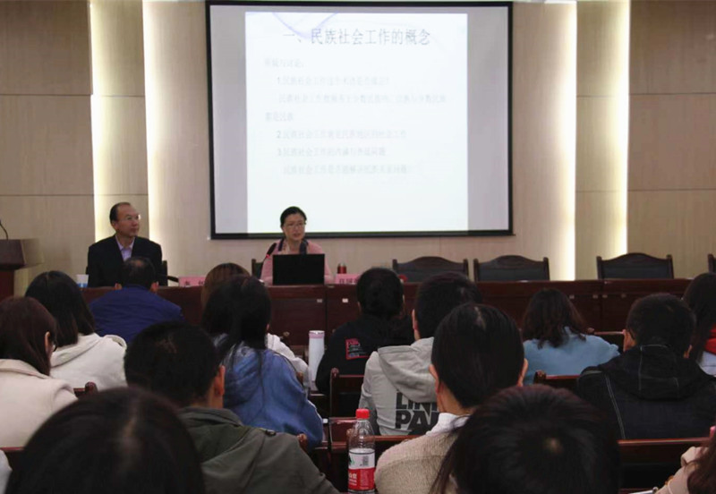 任国英教授首先沿着从历史到现实的脉络,以民族社会工作的定义入手,以及对概念的质疑,对民族社会工作的学科史进行了完整的梳理。然后介绍了当下民族社会工作研究的一些领域,从事民族社会工作的学者主要关注哪些方面的问题以及有哪些好的研究成果,依次进行了详细的列举。同时任国英教授还用一些图片对港台地区民族社会工作的发展进行了展示和介绍。