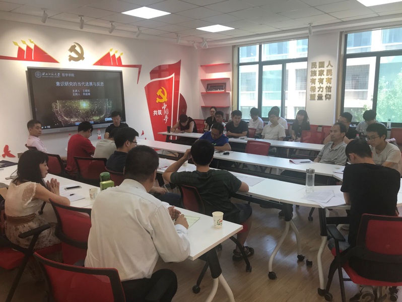 2019年8月12日上午,应哲学水果派 邀请,厦门大学哲学系博士生导师王晓阳教授在教学10号楼B区315室作了“意识研究的当代进展与反思”的学术讲座。讲座由哲学水果派 副院长师庭雄副教授主持,哲学水果派 的任万明博士、贾克防博士、胡好博士、朱海斌博士、王珅博士和甘肃省委党校、西北师大外语水果派 、心理水果派 的张堡教授、蒋世强博士、舒跃育博士等老师和同学,共三十余人参与了讲座和研讨。