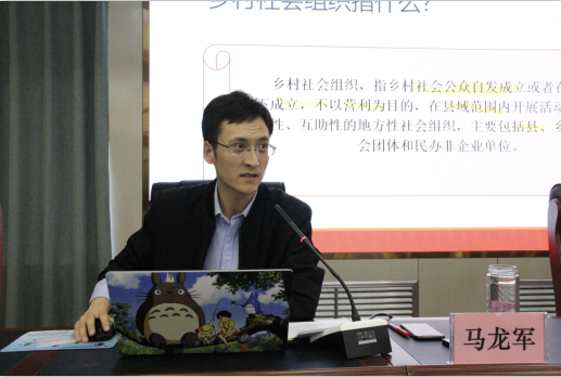 首先,马龙军老师就本次讲座的内容框架向同学们进行了简单的介绍,主要由乡村社会组织的历史发展与乡村社会组织的发展状况两大部分组成。在具体的内容展开之前,马老师向大家明确了乡村社会组织的定义,即乡村社会公众自发成立或者在政府推动下成立,不以营利为目的,在县域范围内开展活动的公益性、服务性、互助性的地方性社会组织,主要包括县、乡镇、村的社会团体和民办非企业单位。并且,关于为什么要关注乡村社会组织这一问题马老师也进行了详细的回答。