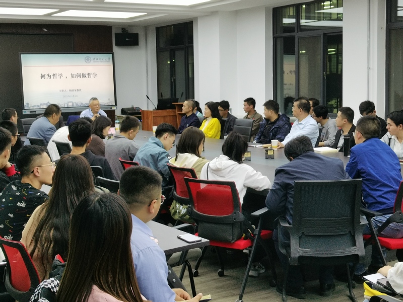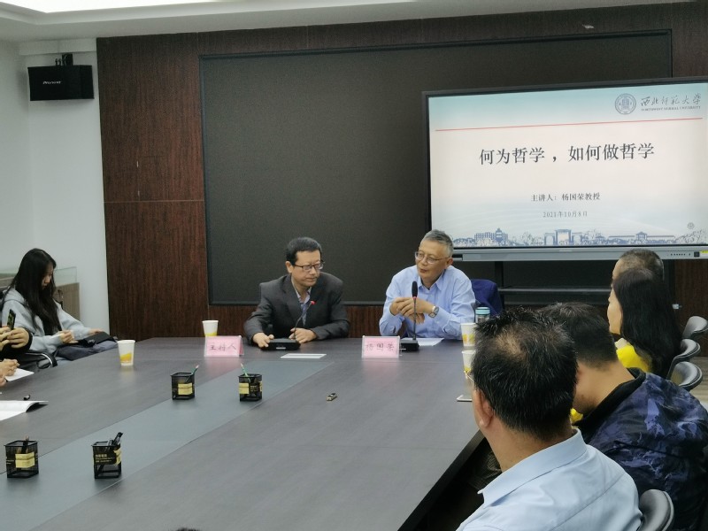 10月8日,我校高层次人才讲座教授、华东师范大学哲学系博士生导师杨国荣教授在学校10号楼B区为水果派 师生作了题为“何为哲学,如何做哲学”的学术报告。哲学水果派 院常务副院长,博士生导师姜宗强教授主持报告会,哲学水果派 贺更粹教授、李永亮副教授、张立恩副教授、赵芙苏老师、王珅老师、田希老师、孙玥老师、张海龙老师,文水果派 雒鹏老师,甘肃省委党校哲学教研室张堡老师以及博士生、硕士生共一百多人参加了此次学术活动。