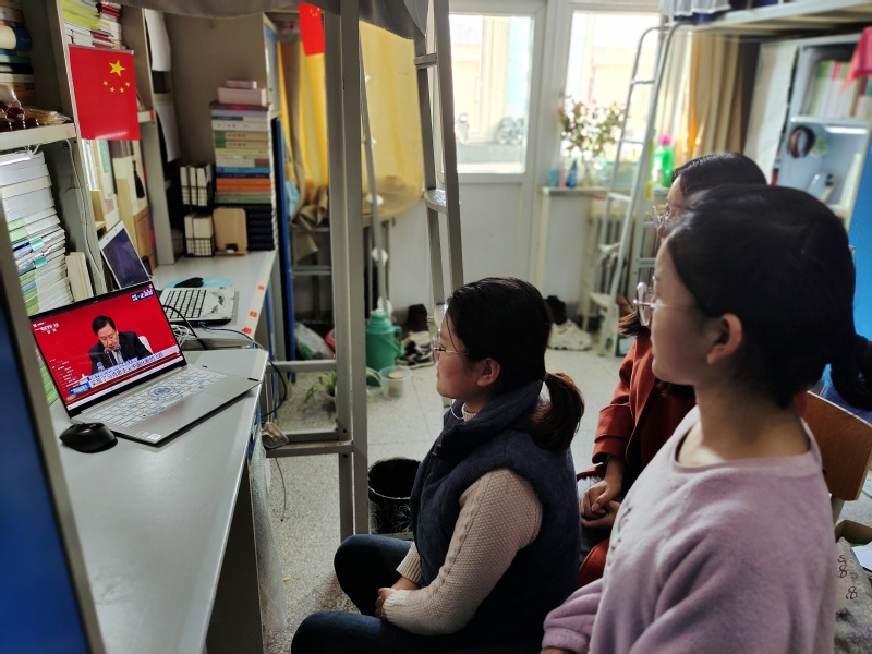 师生纷纷表示要与国家、民族同频共振,实干担当、勇毅前行,以更加昂扬的姿态迈进新征程、建功新时代!