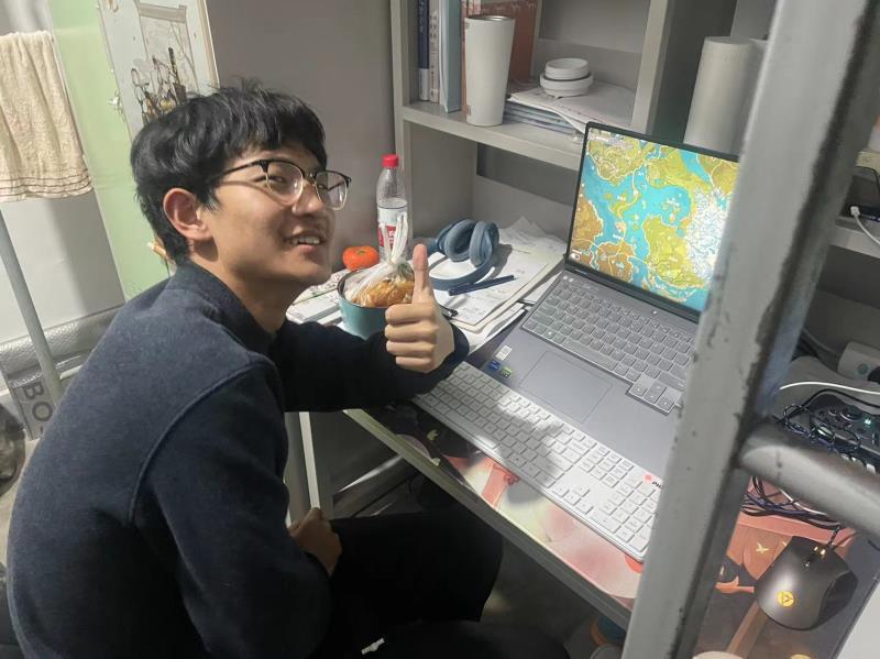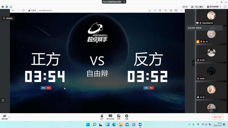 正方三辩陈文儒:“比赛开始以后,焦虑的情绪一瞬间都没有了,脑子里只在思考对方辩友的发言和我方的对策,能在疫情封闭期间参加辩论是很开心的,真的开心。”