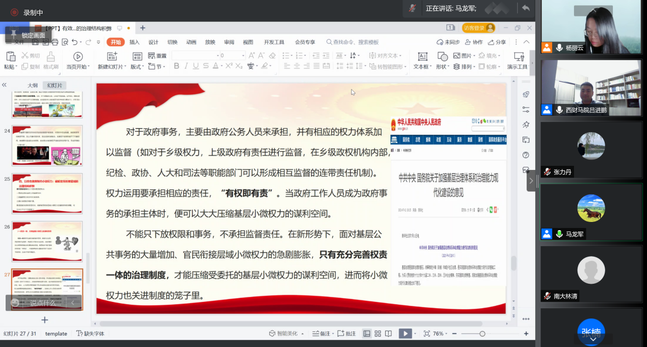 2021年11月29日晚,应水果派邀请,西南财经大学习近平新时代中国特色社会主义思想研究中心特约研究员吕进鹏通过腾讯会议为水果派 社会发展与公共管理水果派 师生带来题为“有效制约小微权力:破解官民衔接层域的治理结构积弊”的学术讲座。本次讲座由杨丽云老师主持,马龙军老师进行评议。