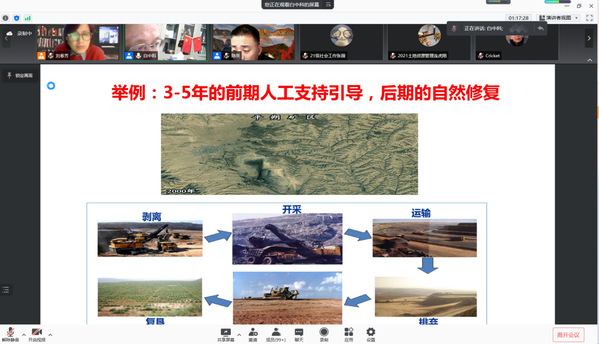 白老师提出,生态修复要充分发挥“整体保护、系统修复、综合治理”的主观能动性,摒弃对受损生态系统推倒重来或放任自然恢复的极端思想。人工支持引导生态系统自然修复通常以参照生态系统为标准,参照生态系统包含保护保育、自然恢复、辅助再生和生态重建四种模式。保护保育以荒漠和野生动植物为典型案例,自然恢复中白老师分析,植被恢复后必须撤离人为扰动,提高土壤的最大吸收率,辅助再生是用受损生态系统的自我恢复能力来恢复生态平衡。生态重建中,白老师解释了黄土高原特大型矿区生态系统“逆向-正向”演替理论和方法,黄土高原特大型煤矿区植被重建,为我国生态脆弱区系统修复提供了可借鉴的本土化模式。