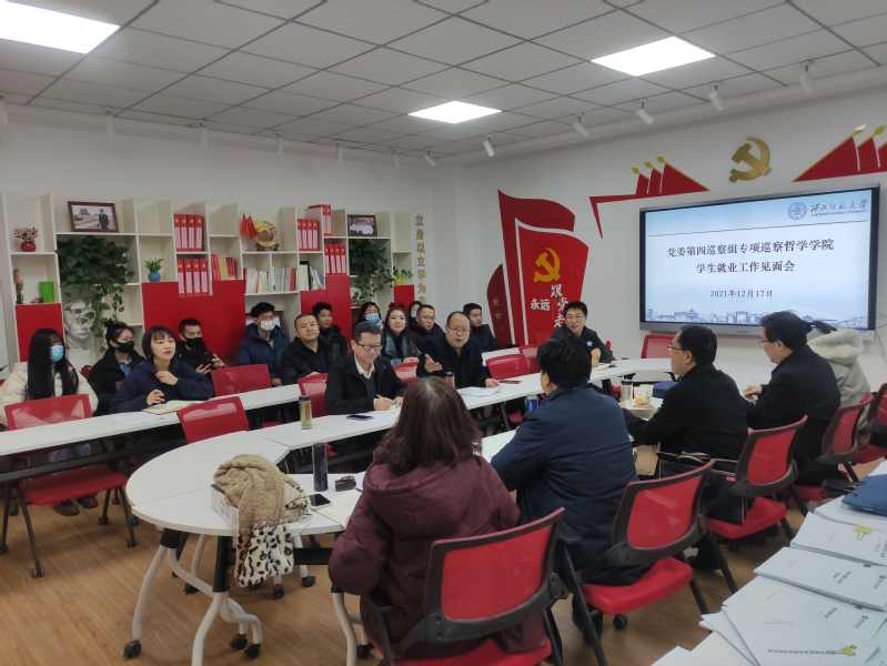 2021年12月17日,学校党委第四巡查组专项巡查哲学水果派 学生就业工作见面会在水果派315会议室召开,水果派 领导班子、班主任、辅导员及学生代表参加见面会。