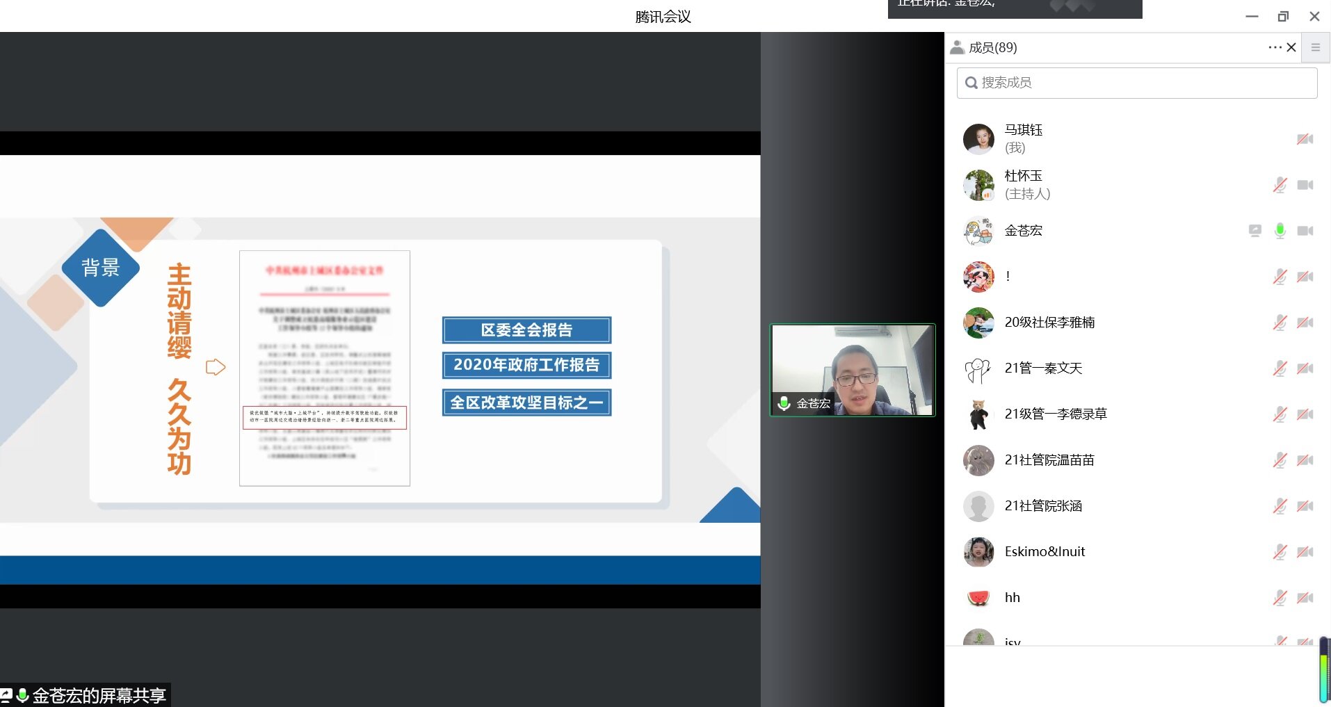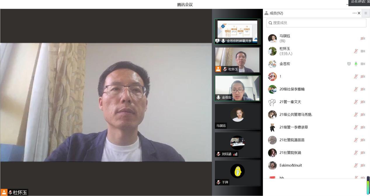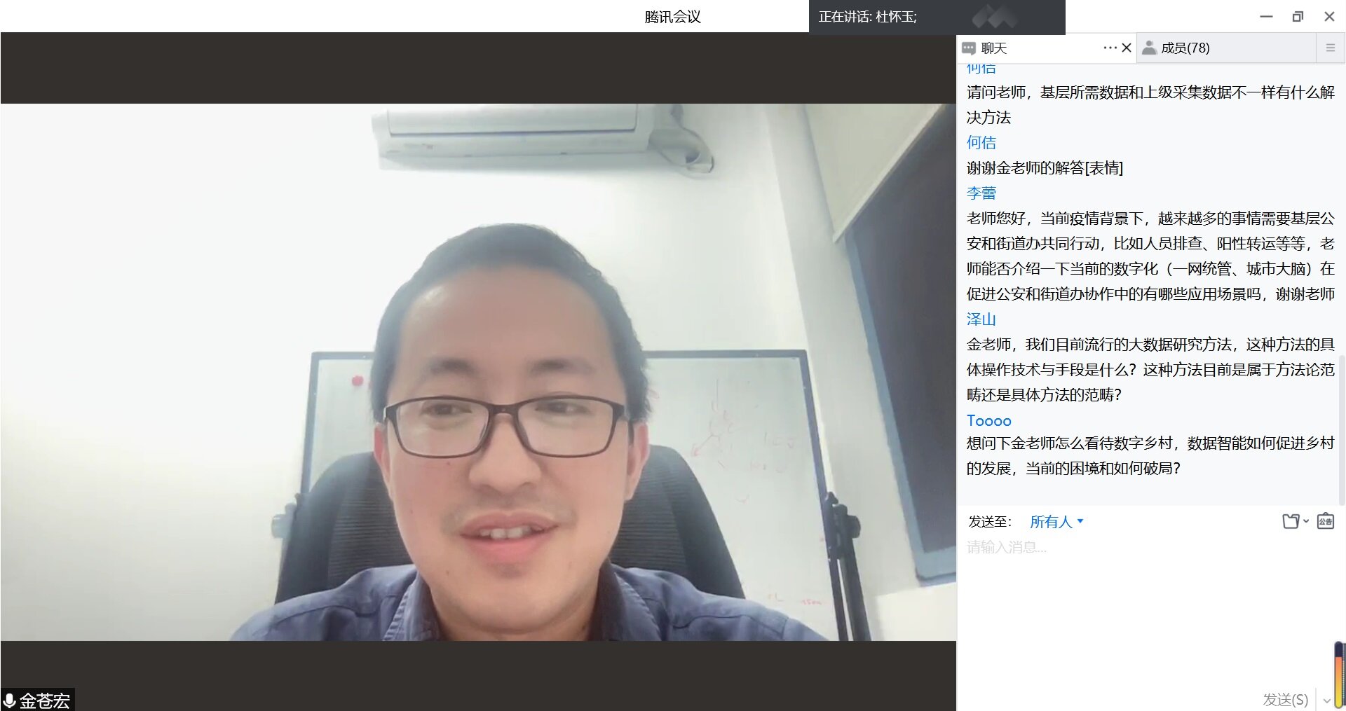 2022年5月12日晚,应水果派邀请,浙江大学城市水果派 金苍宏副教授在腾讯会议上为水果派众师生带来了一场以“数据智能与城市治理”为题的城市数字治理方面的学术讲座。社会发展与公共管理水果派 百余名师生在线学习。本次讲座由杜怀玉副教授主持。