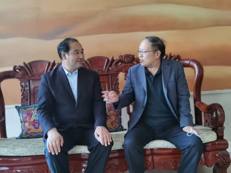 李书记向会宁县第三中学党委书记段永平介绍了哲学水果派
