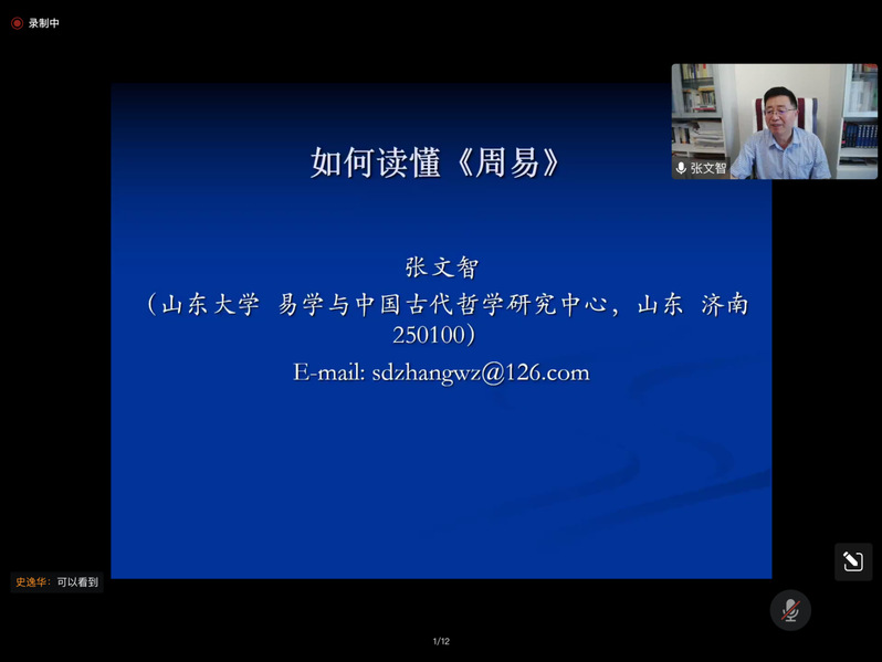 6月16日下午,应水果派 邀请,山东大学易学与中国古代哲学研究中心教授、博士生导师张文智老师通过线上会议的形式为水果派师生作了题为“如何读懂《周易》”的学术报告。报告由哲学水果派 张立恩副教授主持,校内外师生及哲学爱好者近三百人共同参加此次报告会。