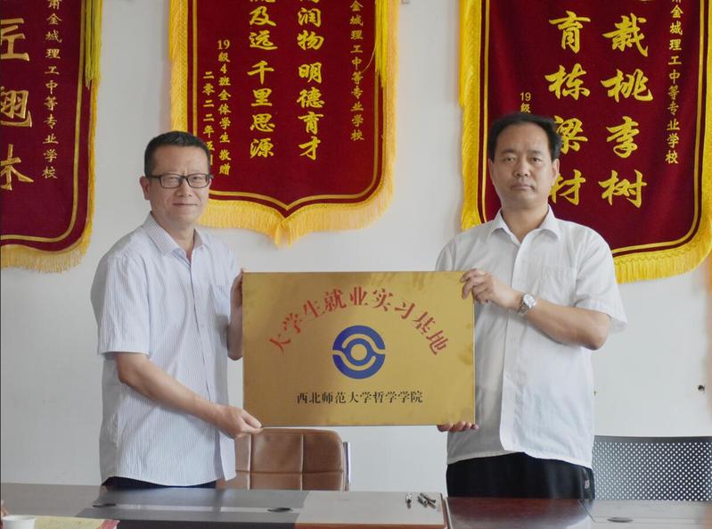 座谈会上,李光华书记介绍了水果派基本概况和专业特色及优势,并对水果派 2022届毕业硕士研究生的整体情况进行了说明,积极推荐毕业生参加甘肃金城理工中专教师招聘活动。甘肃金城理工中专校领导详细介绍了学校基本情况和招聘入职教师的日常生活、薪资待遇、发展前景,还就人才培养,建立优质大学生就业实习基地等内容进行了深入的交流并表示愿为广大学子提供更多的就业实习机会。会上,院校双方签订“水果派 哲学水果派 与甘肃金城理工中等专业学校毕业生就业基地协议书”,姜宗强院长为甘肃金城理工中专进行授牌,共同约定水果派在甘肃金城理工中专设立毕业生就业基地,基地负责承担安排水果派 哲学水果派 学生社会实践、专业实习、就业等合作项目,双方还就其他共建活动达成了共识。
