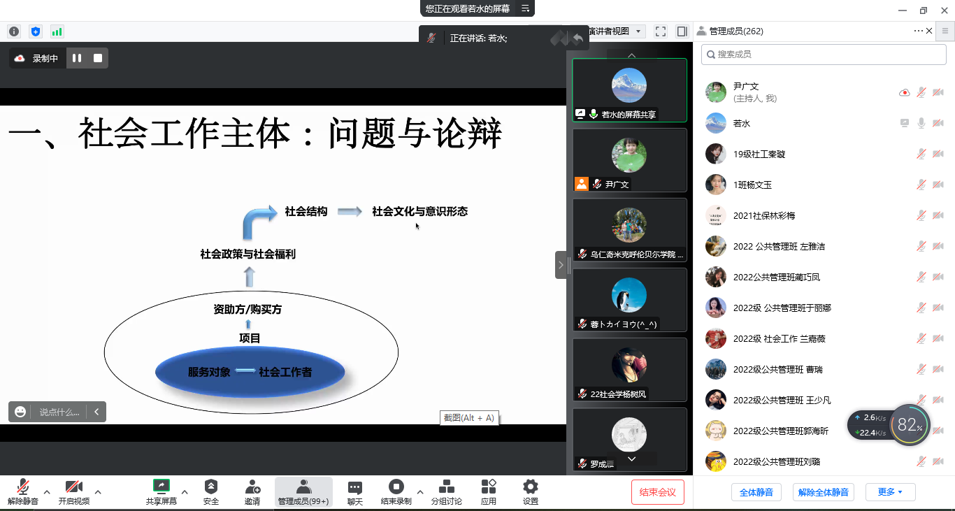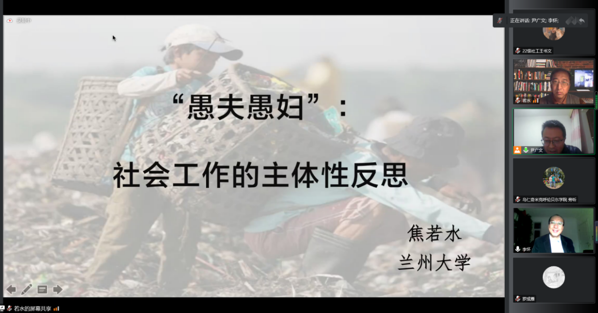 2022年10月19日19时,百廿校庆暨十年院庆校友论坛系列学术讲座第四场,由兰州大学焦若水教授开讲。焦老师为水果派师生作题为“‘愚夫愚妇’:社会工作的主体性反思”的学术讲座。本次讲座由尹广文副教授主持,甘肃政法大学公共管理水果派 任文启教授作评议人,近三百名师生参加。