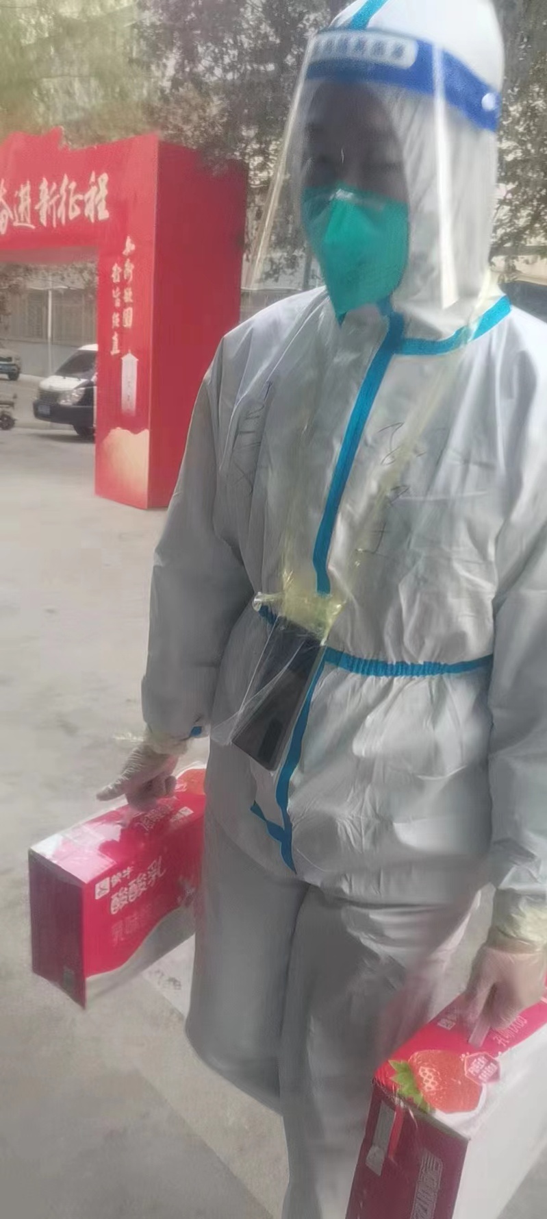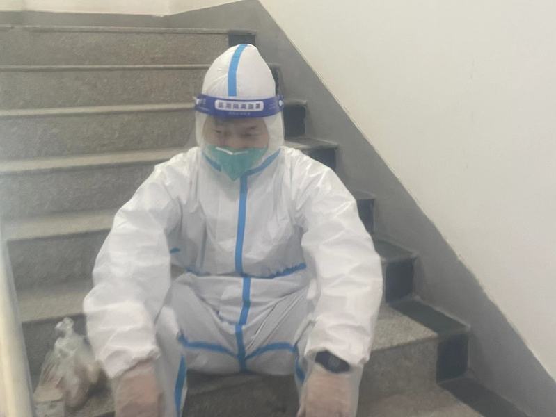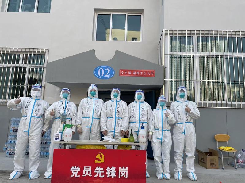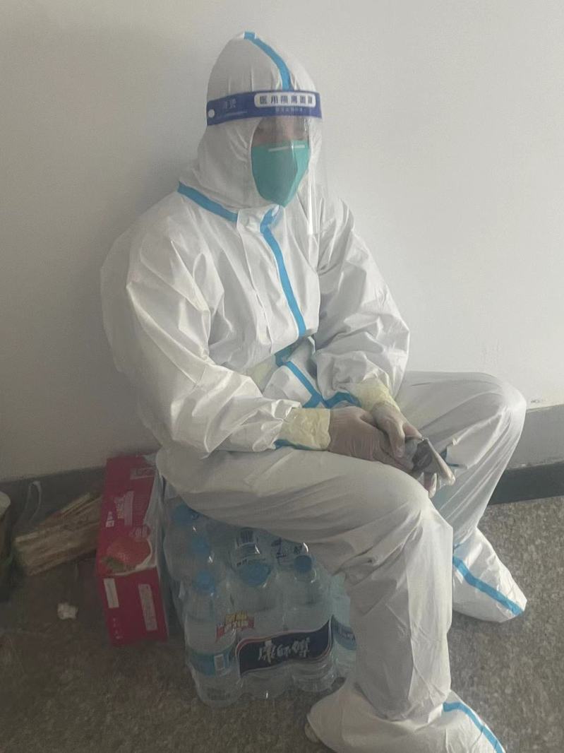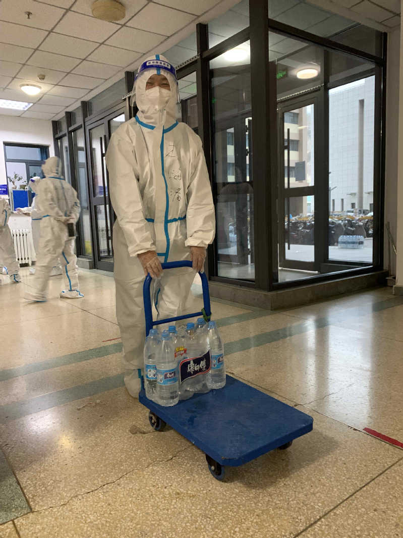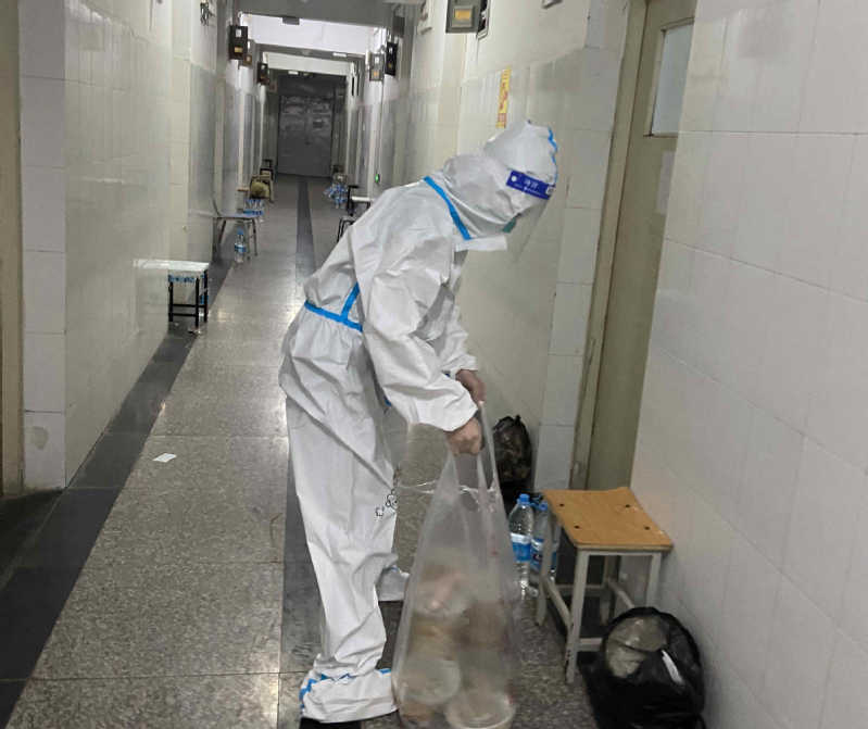 办公室主任汪光文在兰天公寓2号楼主要负责学生的日常生活保障,协助医护人员开展核酸检测工作,每日为学生发放三餐和饮用水,工作中全程穿戴防护服,为学生送餐结束后汗水经常湿透了里面的衣衫。他说:“面对突发校园疫情,作为一名共产党员,就是要坚决服从组织安排,坚决保持定力、时刻保持清醒和斗志。能够参加一线抗疫,为保障学生健康和安全而工作,是光荣而神圣的职责。我们将驰而不息,共同努力,做好学生公寓疫情防控服务保障等工作,期待我们美丽的校园早日恢复生机和活力!”