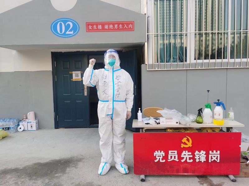 “初心明如炬,使命重于山。”在疫情防控的紧要关头,哲学水果派 教职工闻令而动,从“三尺讲台”毅然投身“抗疫一线”。杜海涛、胡朝都、田希、孙圣四位老师积极响应学校疫情防控志愿者的招募,分别加入知行校区和兰天公寓工作专班,为学生送餐送水、清理生活垃圾、组织学生进行核酸检测。工作中不喊累、不抱怨,坚决服从专班的各项工作安排,倾心倾力地为学生提供服务和保障。