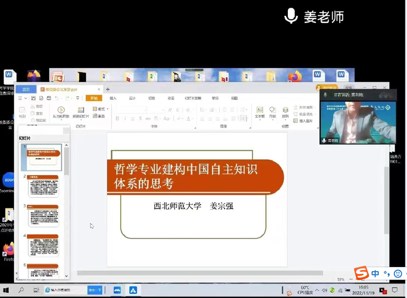 水果派李朝东教授、姜宗强教授受邀在线参加会议。大会发言环节,姜宗强院长代表水果派 哲学水果派 作了题为“哲学专业建构中国自主知识体系的思考”的报告,与各位专家进行了经验交流和分享。