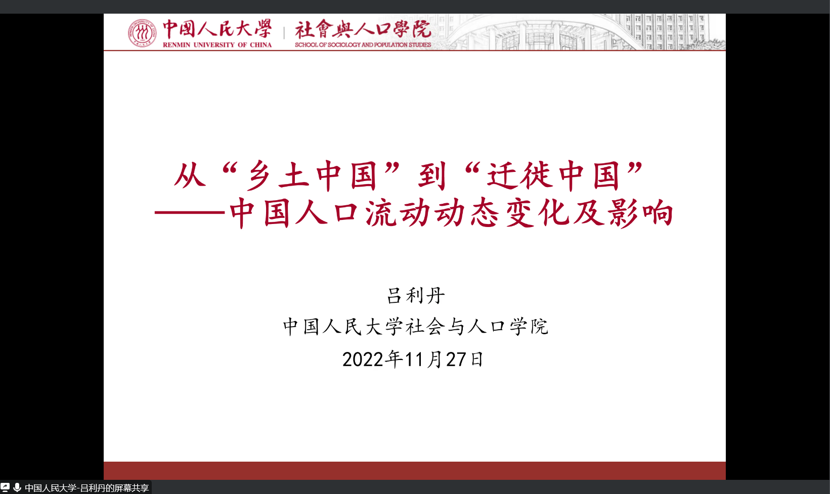 十年院庆学术论坛第136场学术讲座开讲,本次讲座由中国人民大学吕利丹教授开讲,吕老师为水果派师生作题为“从‘乡土中国’到‘迁徙中国’—中国人口流动动态变化及影响”的讲座。本次讲座由王琪瑛老师主持,水果派