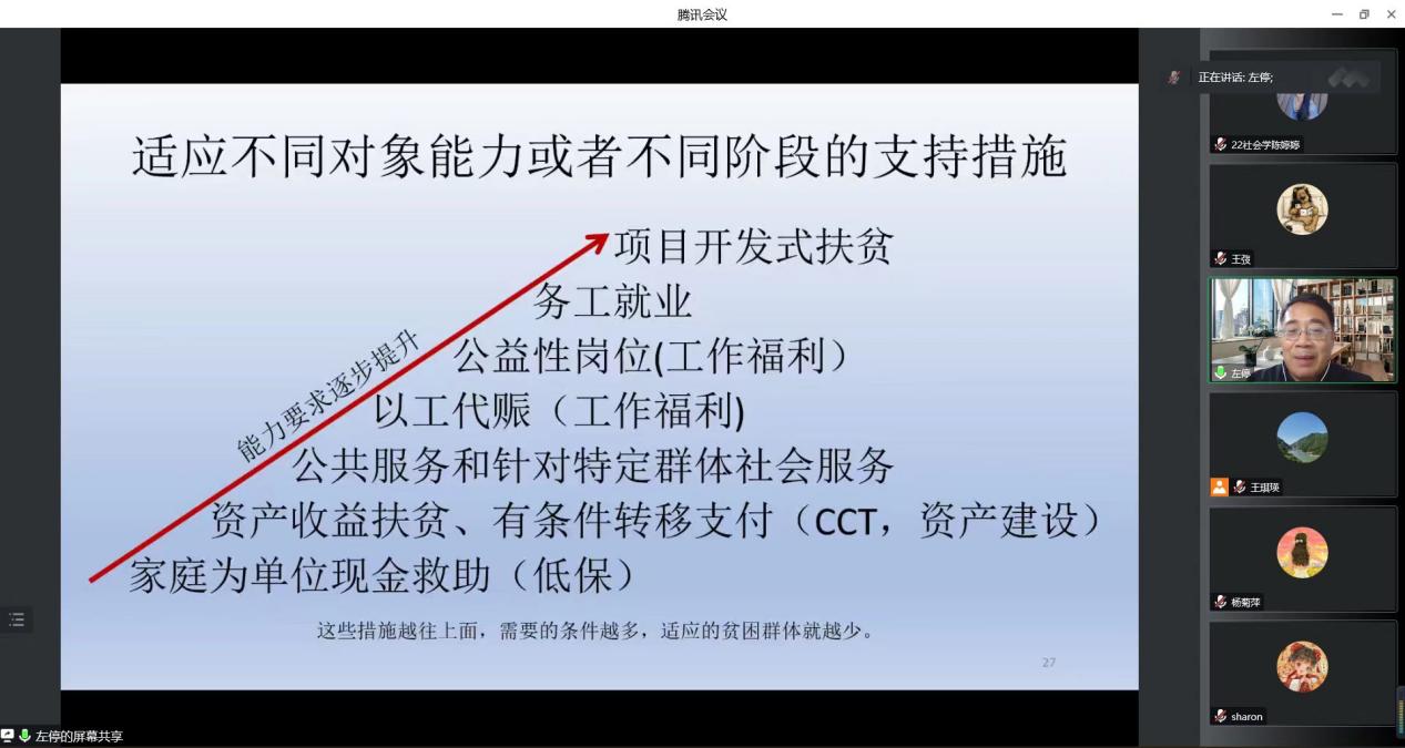 左停教授首先介绍了本次讲座具体从三个方面展开:一、引言:低收入人口帮扶的提出与重要意义;二、低收入人口帮扶的问题与挑战;三、低收入帮扶的政策选项。