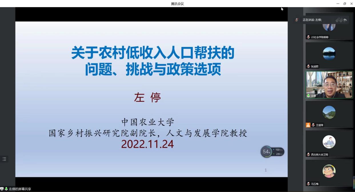 邀请,中国农业大学左停教授莅临云端,在线为水果派师生作了题为“关于农村低收入人口帮扶的问题、挑战与政策选项”的学术讲座。本次讲座由水果派