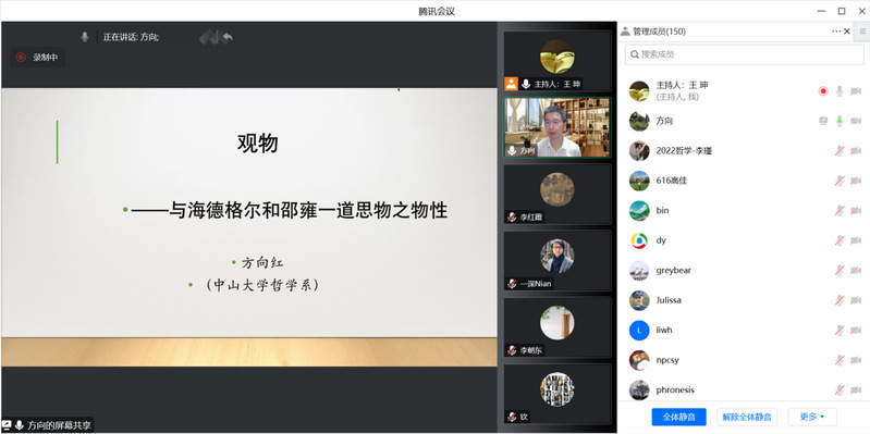 90期 | 第十二周 | 方向红教授 | 观物——与海德格尔和邵雍一道思物之物性 | 王珅副教授 | 朱海斌副教授 | 腾讯会议 533442607 |