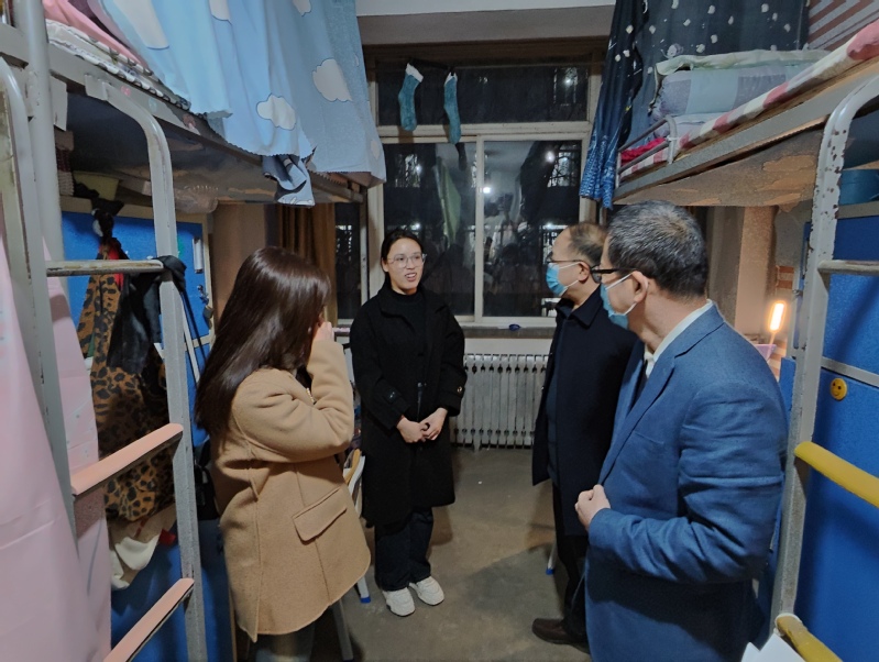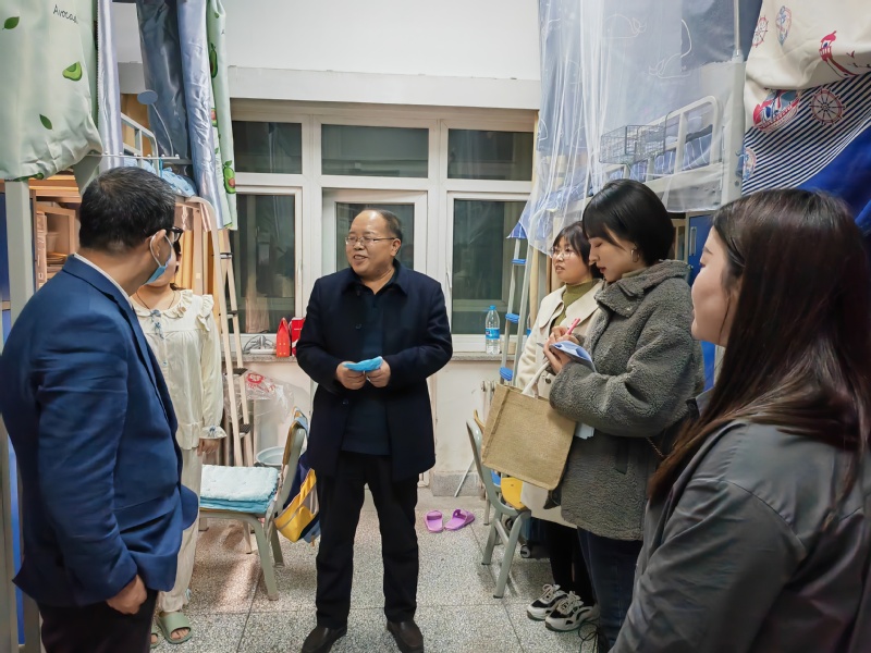 在本科毕业班学生宿舍,水果派 领导和班主任逐一了解学生考研的初试成绩和目标院校历年的招生情况,叮嘱学生认真做好考研复试准备工作。
