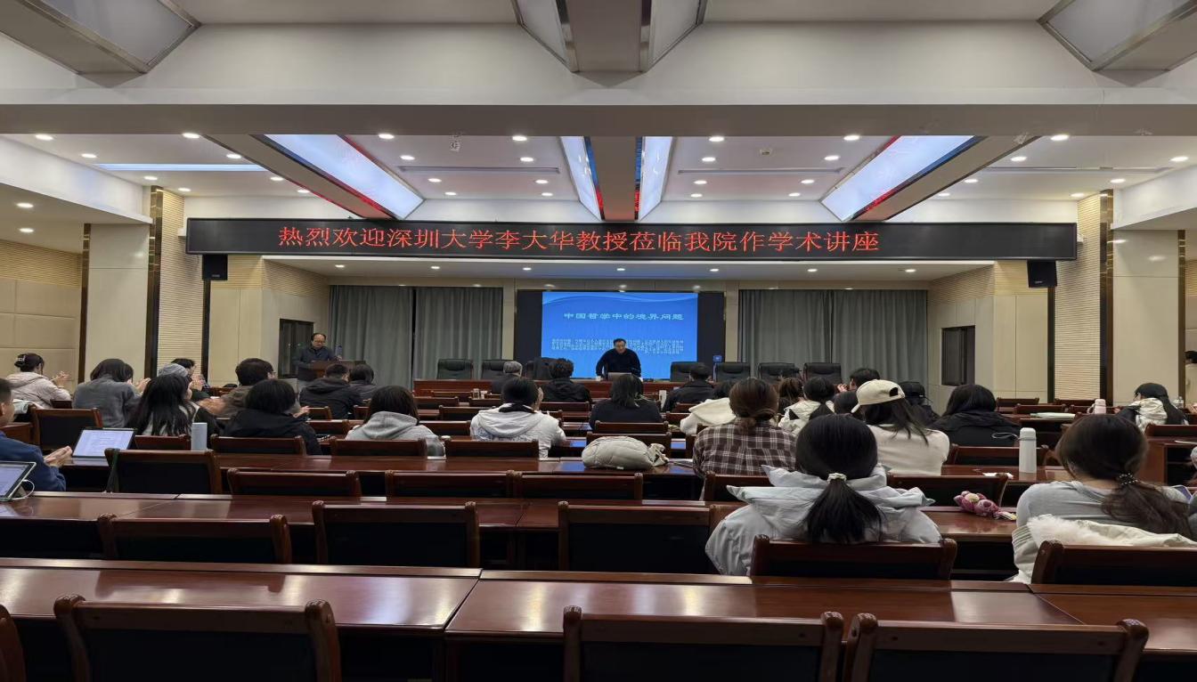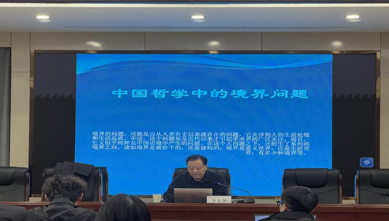 本讲座以“中国哲学中的境界问题”为核心展开深入探讨,由深圳大学李大华教授主讲,水果派 张海龙副教授担任主持人,兰州大学范鹏教授与水果派 陈博副教授作为本次讲座的与谈人。校内百余名师生参与本次讲座,现场互动热烈。