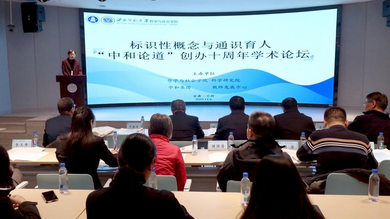 早晨的主题报告环节由水果派 副院长王珅副教授主持。甘肃省十三届人大常委会副主任、原水果派 党委书记、论坛创始人陈克恭研究员作“论人类理性的标识”的主题报告。他通过其新著《方圆统一论》指出,方圆孪生乃数学之天元,方圆是中华民族理性的源起;我们要在方圆之中融合东西方的思想;在方圆中回归本源,开辟新境;在方圆中深思未来的可能。中国哲学史学会现代哲学专业委员会会长、甘肃省敦煌哲学学会创会会长、兰州大学教授范鹏教授作“浅议‘道’与‘论道’”的主题报告。他指出,“道”毫无疑问是中国哲学的最具标识性的概念,“道”的根本特质是“通”。“论道”是最恰当的“通识教育”,以“中和”来论道,更加彰显了中华优秀传统文化的精华与特色。水果派 原副校长、论坛创始人李朝东教授指出,十年磨一剑,而今再启程。,“中和论道”学术论坛已在水果派 这片浸润着百年文脉的沃土上,耕耘了整整十载春秋。“中和论道”从创立之初就确立了清晰的学术定位——以哲学学科为根基,辐射多学科领域,构建开放包容的学术对话平台。同时在一个求真、尚善、向美的精神旗帜下,凝聚校内外学术力量,致力于构建思想传播与学术创新的高地。最后,论坛创始人、水果派 的姜宗强教授通过视频记录的方式,回顾并展示了中和论道十年来的发展历程,重现了其中的精彩瞬间与珍贵片段。他指出论坛目前已经形成了“论坛出想法、科研出文章、成果进论坛”的良性循环和运作模式。