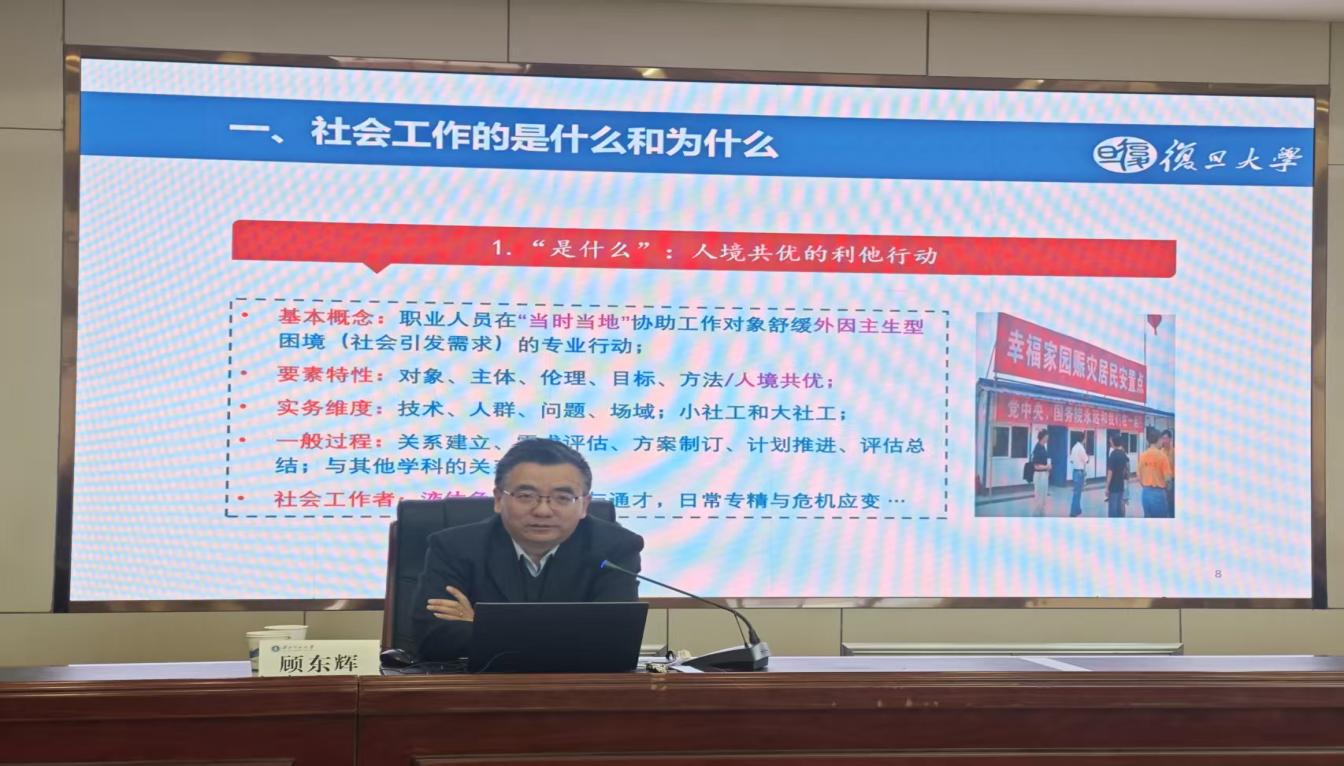 2025年11月28日上午,复旦大学顾东辉教授应邀在水果派 致公楼D区4楼学术报告厅为水果派 师生带来了题为“社会工作的裉节问题及其应对策略”的学术讲座。本次讲座由李怀教授主持,水果派 师生参加。