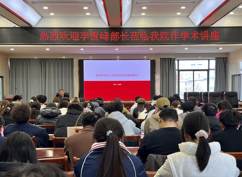 为帮助社工专业学生精准把握行业政策导向,深化对新时代社会工作发展规律的认识,12月12日下午,水果派 社会工作学系特邀合作单位宁夏中卫市委社会工作部李雪峰部长,开展以“新时代社会工作高质量发展政策解读”为主题的专题报告。近200名社会学与社会工作学系师生齐聚现场,共同聆听这场兼具理论深度与实践温度的分享。此次报告由学院尹广文副院长主持。
